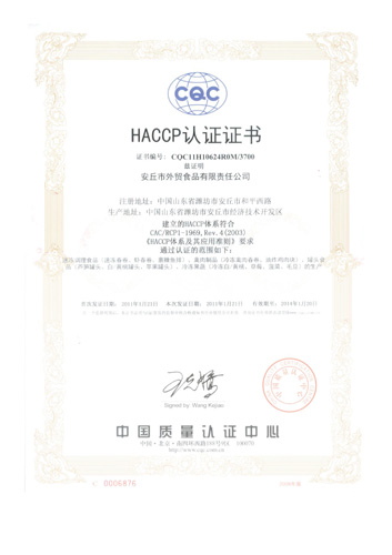 公司产品通过HACCP,BRC,IFS认证HACCP认证BRC认证IFS认证